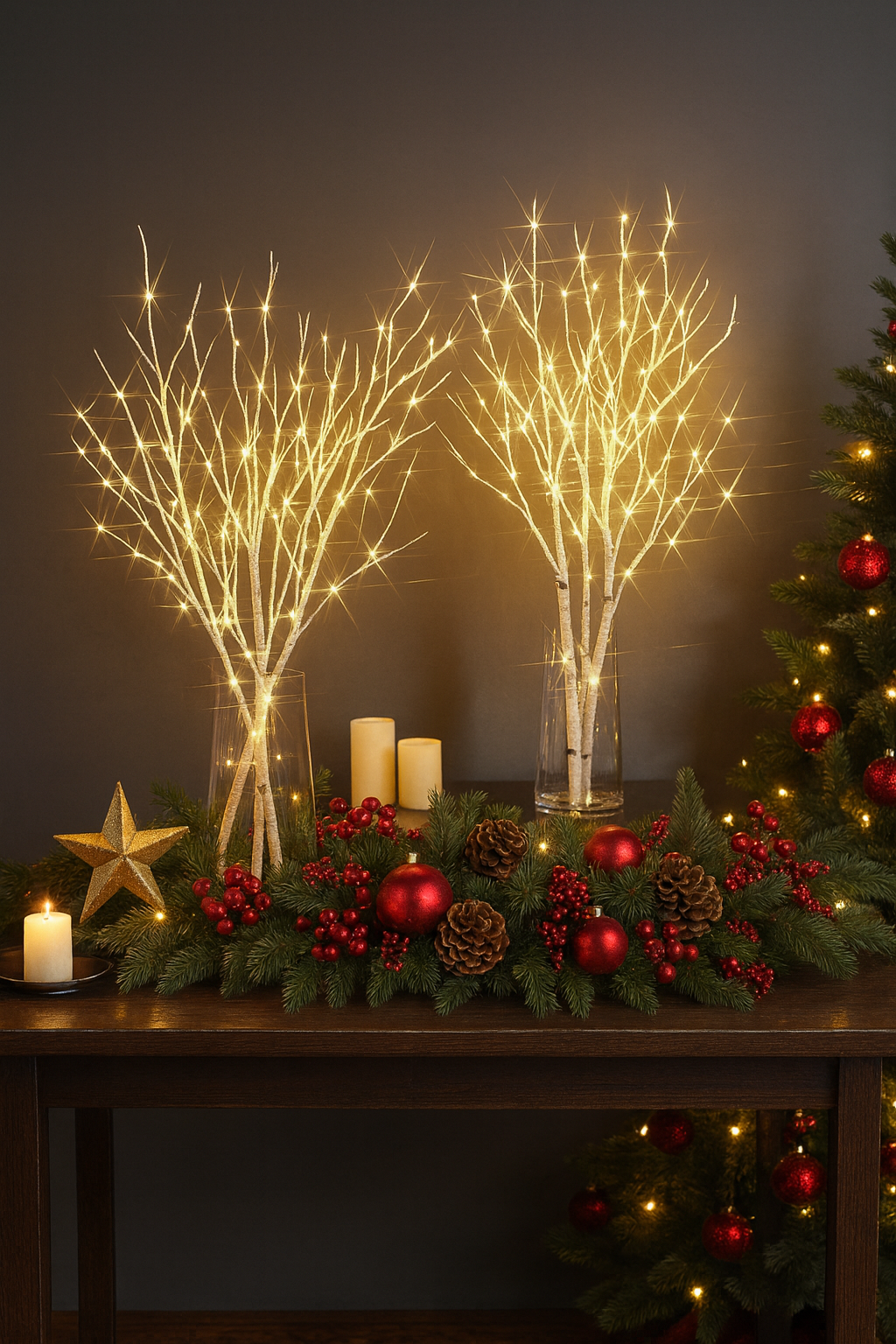A modern twist on a timeless tradition. This lighted branch adds a soft touch of seasonal magic β perfect for mantels, table settings, or adding a festive glow to small spaces.
